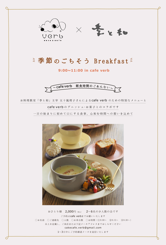 cafe verbにご来店あるいはcafe verb メールアドレス(下記)にご連絡をお願いいたします︎